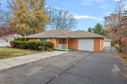 Charming all brick home on over a half acre! Step inside to a large, open living room, a welcoming eat-in kitchen, and a spacious laundry room for everyday convenience. The home features two roomy bedrooms with original hardwood floors. New roof on both the house and detached garage (2020) and a new A/C and blower installed in 2025. Relax or entertain under the covered back patio, which overlooks the expansive, privacy-fenced (new in 2020) yard that has a variety of fruit trees that include apple, apricot and cherry. Car lovers, hobbyists, or those needing extra storage will appreciate the attached garage plus a bonus 24' x 16' detached garage. The expanded driveway provides ample parking for guests, work vehicles, or recreational toys.